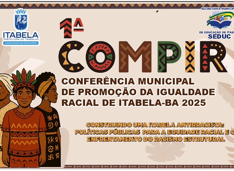 A Prefeitura de Itabela, por meio da Secretaria Municipal de Educação (SEDUC) com iniciativa do Governo do Estado, realiza nesta quinta-feira, dia 5 de junho, a 1ª Conferência Municipal de Promoção da Igualdade Racial – COMPIR. O evento acontece na Loja Maçônica Fraternidade Itabelense, das 7h às 17h.
